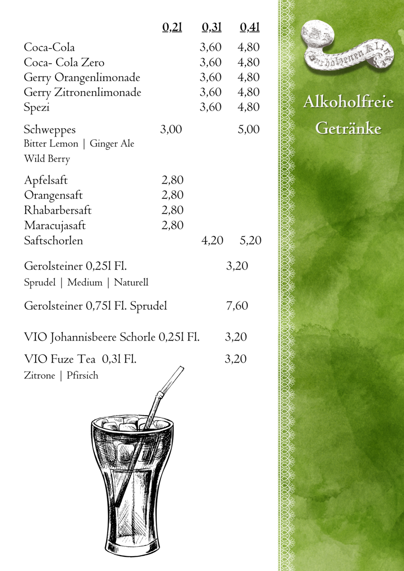 Änderungen und Irrtümer vorbehalten. Es gilt stets die aktuelle Speisekarte im Restaurant.