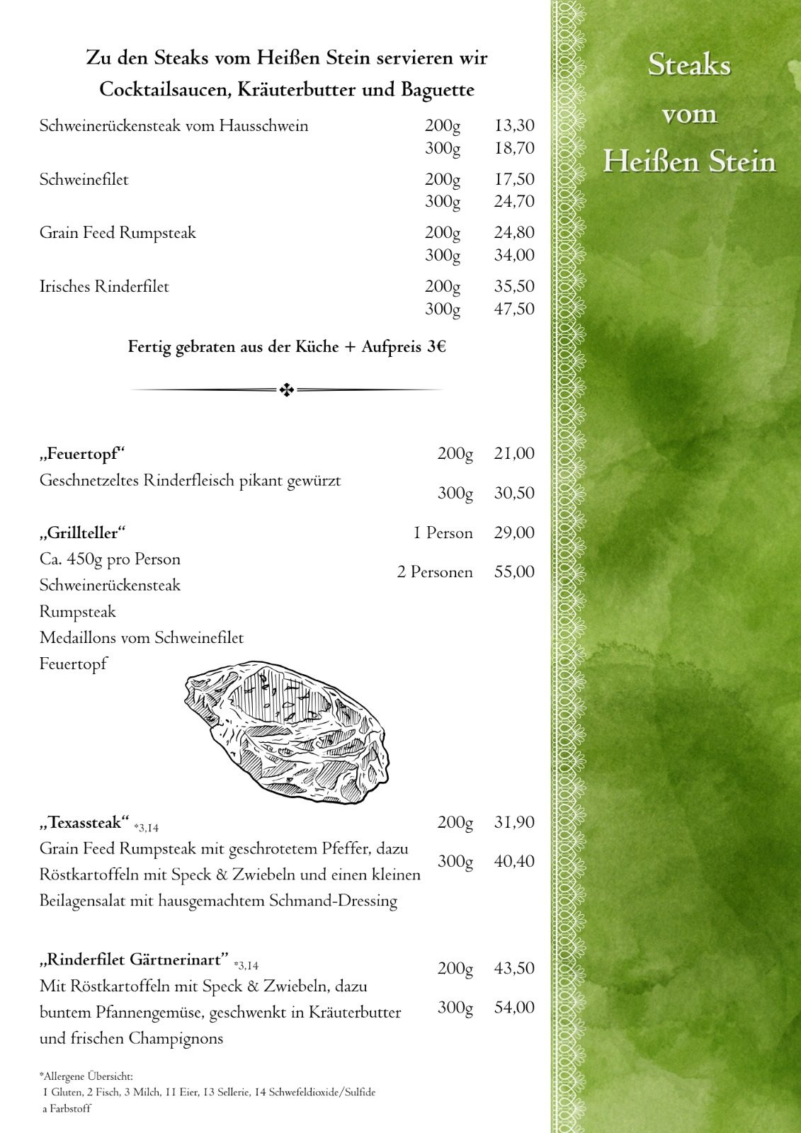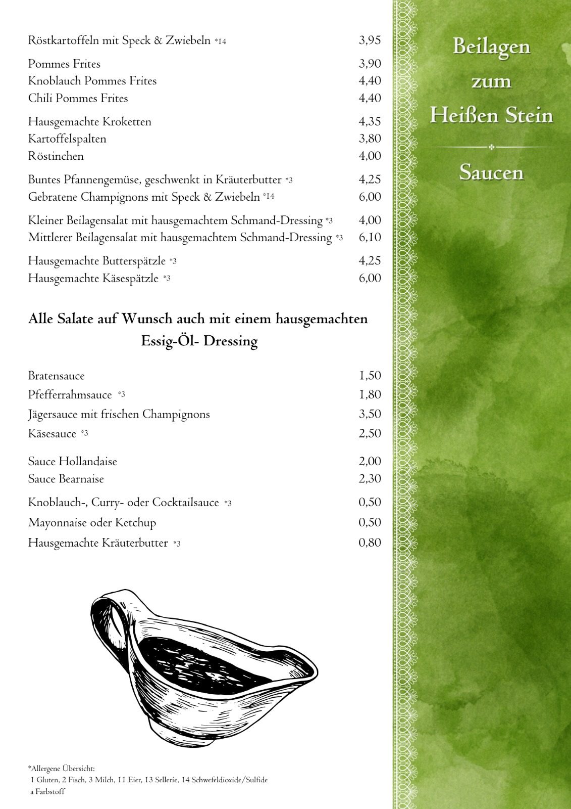Änderungen und Irrtümer vorbehalten. Es gilt stets die aktuelle Speisekarte im Restaurant.
